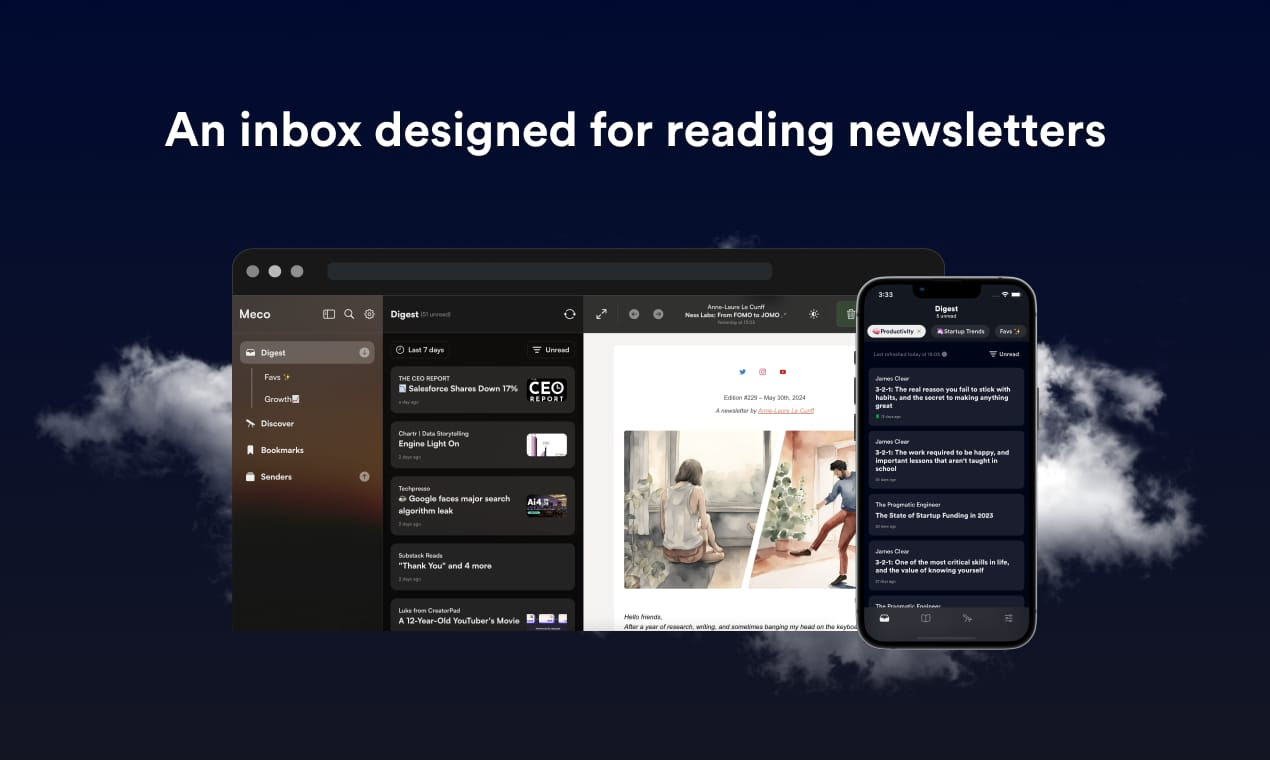 Over 30k readers are enjoying their newsletters (and decluttering their inbox) with Meco - try the app today!