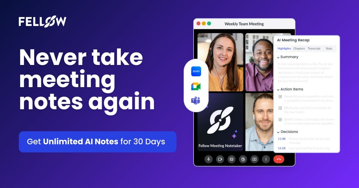 Try Fellow today and get unlimited AI meeting notes for 30 days.