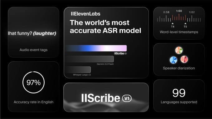 ElevenLabs, fresh off a $180M funding round, launched Scribe, a speech-to-text model supporting 99+ languages, claiming higher accuracy than Google Gemini 2.0 Flash and OpenAI’s Whisper.