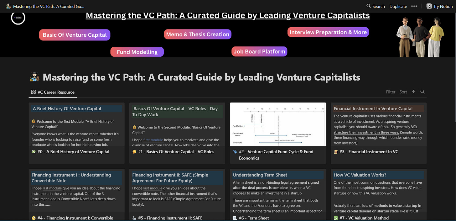 All-In-One VC Interview Preparation Guide: With a leading investors group, we have created an all-in-one VC interview preparation guide for aspiring VCs. Don’t miss this. (Access Here)