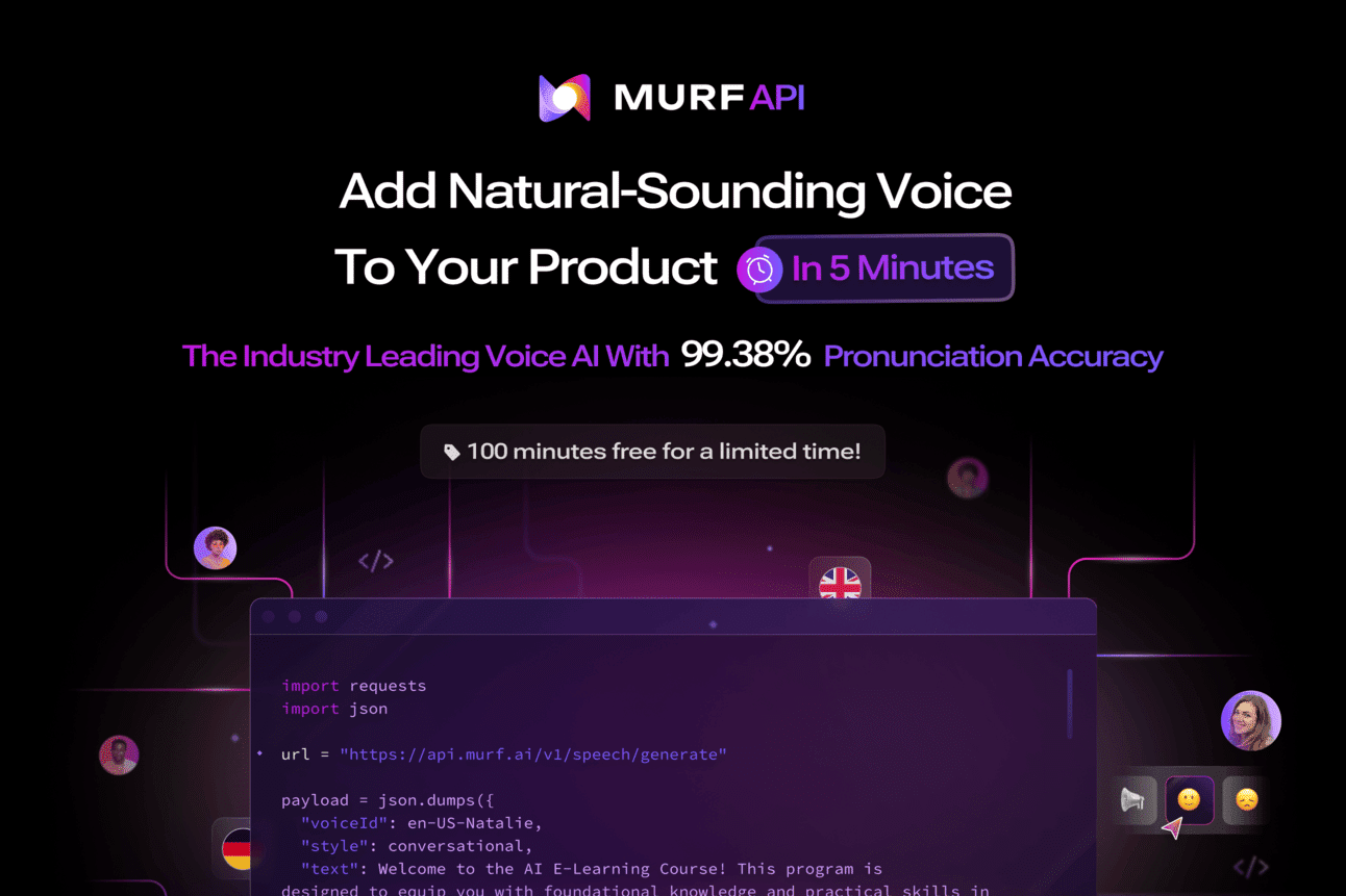 If you’re a developer, creator, or business looking for ultra-realistic AI voices, Murf’s AI Voice API delivers: