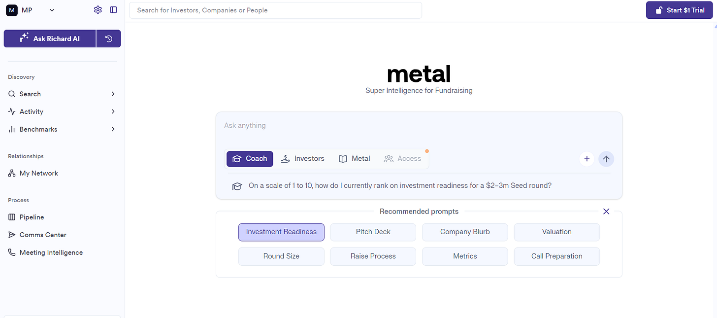 Metal is an AI-powered operating system for founders raising venture rounds.
