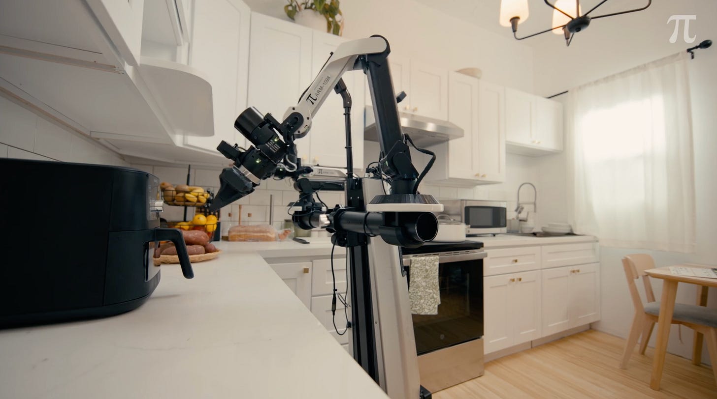 In one test, π0.7 figured out how to use an air fryer despite having only two loosely related episodes in its training data, and after step-by-step verbal coaching it successfully cooked a sweet potato.