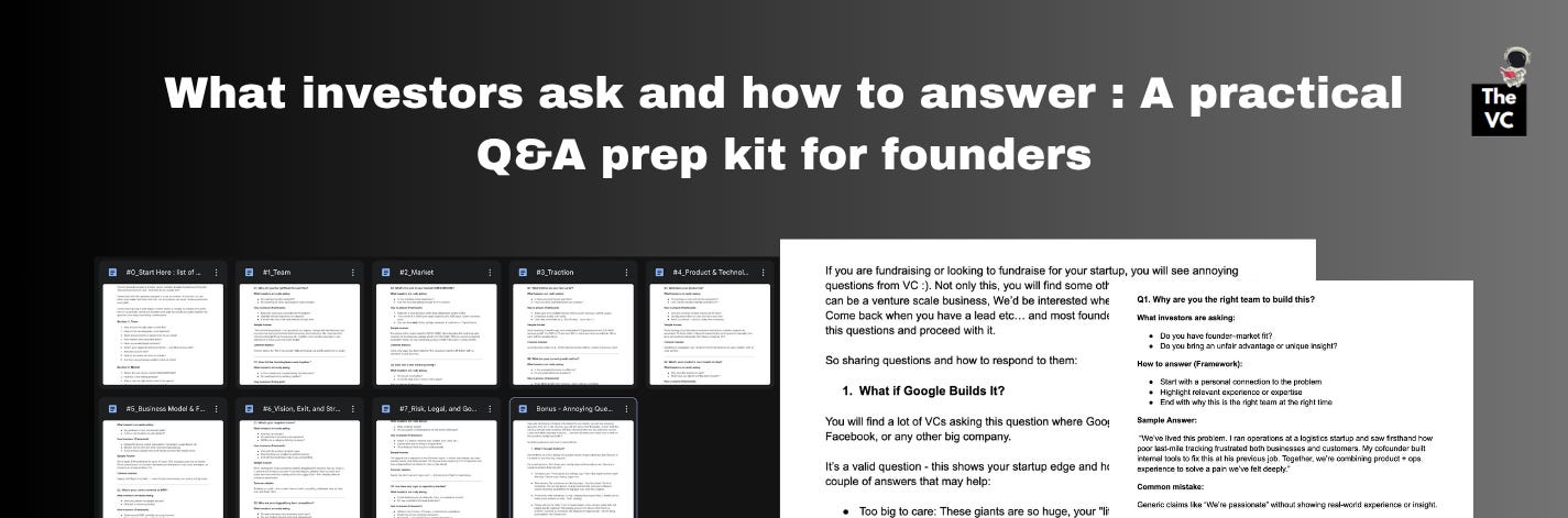 This Investor Q&A Prep Kit is built with insights from top VCs and founders, giving you the exact questions investors ask, plus frameworks, sample answers, and the hidden meaning behind each one.
